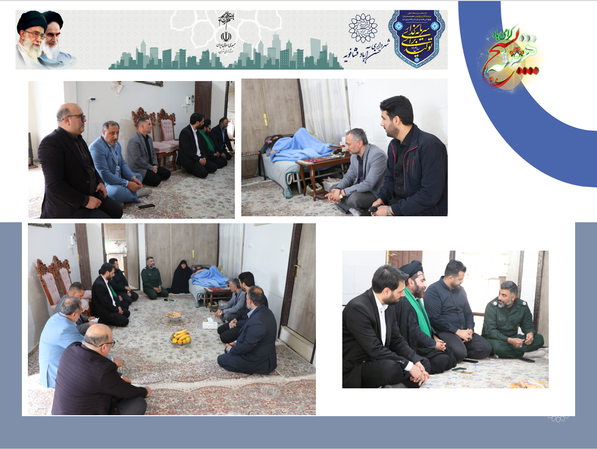 به گزارش روابط عمومي شهرداري وشوراي اسلامي شهرحسن آباد، همزمان با فرارسیدن هفته بسیج، ظهر امروز جمعی از مسئولان ارشد شهر حسنآباد و بخش فشافویه ، با حضور در منزل مادر شهیدان والامقام قرهچِلی با ایشان دیدار و عیادت کردند