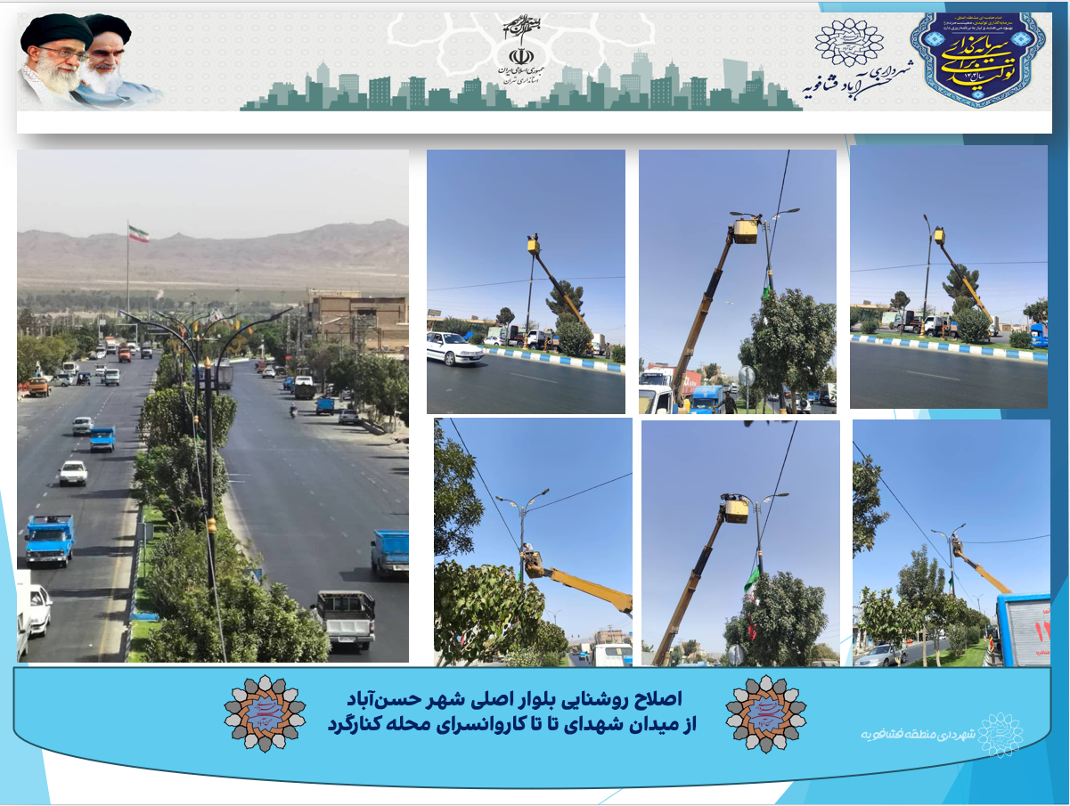 اصلاح روشنایی بلوار اصلی شهر حسنآباد از میدان شهدای تا تا کاروانسرای محله کنارگرد
